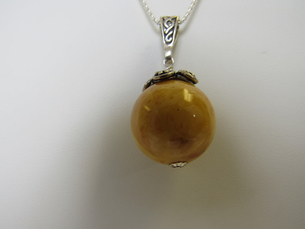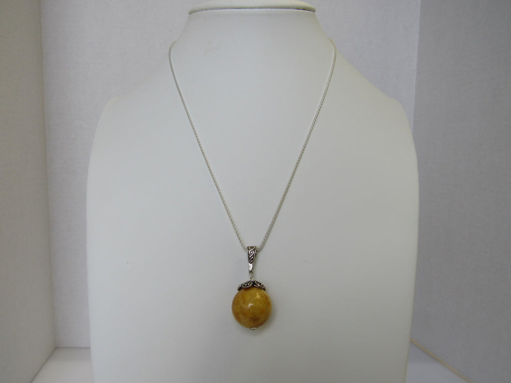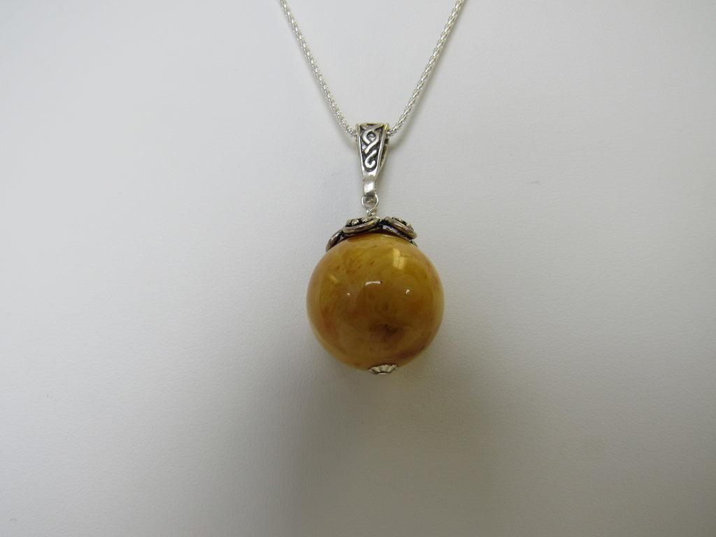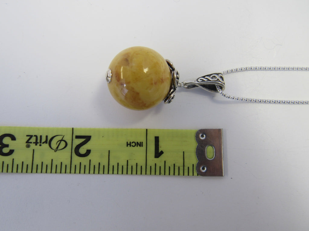 Baltic Amber Pendant Necklace, 925 Sterling Silver, 20mm 18" ALLUREGEM S1811