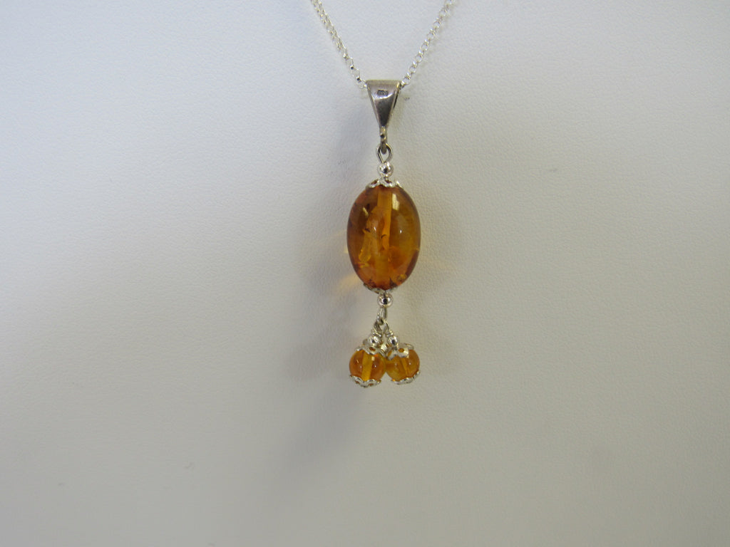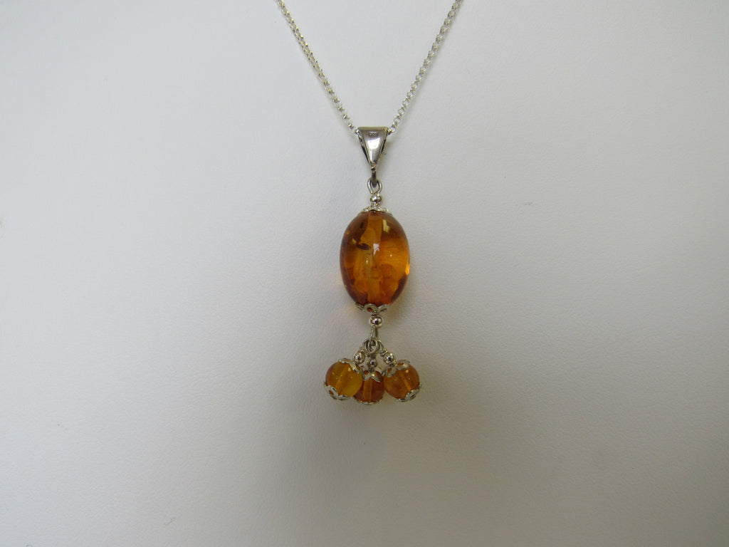 925 GENUINE Baltic Amber Pendant Necklace 18 "