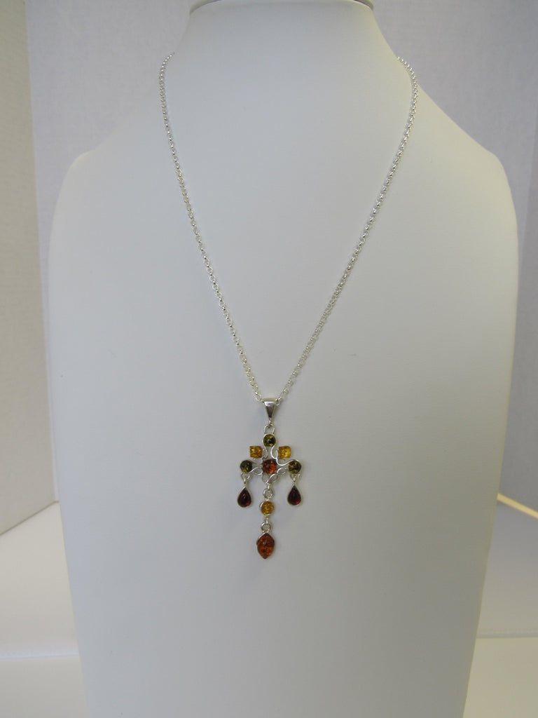 925 BALTIC AMBER PENDANT NECKLACE 20 "