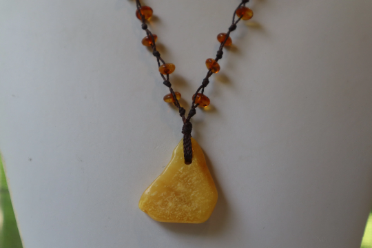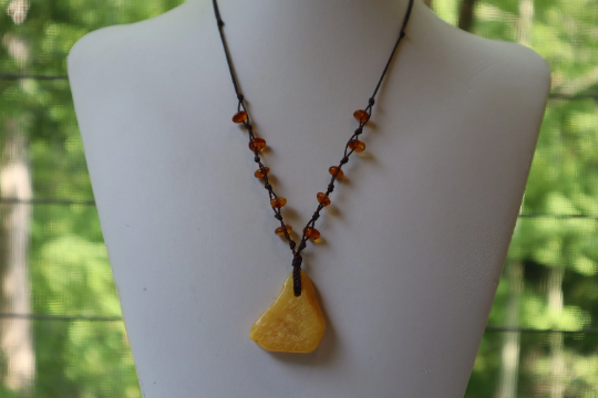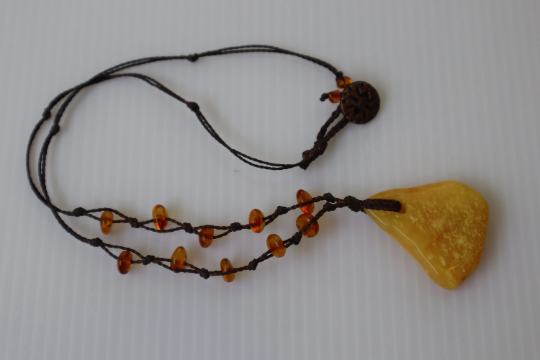 Beautiful Handmade Knotted Necklace with Genuine Baltic Amber Pendant and Beads and Copper Alloy Button Clasp E2446