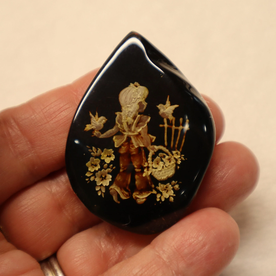 Genuine Baltic Amber Carved Cabochon, 7.7 gm, Hand Carved Unset Pendant Focal Bead, Alluregem E3107