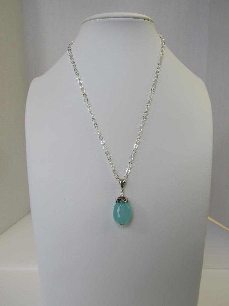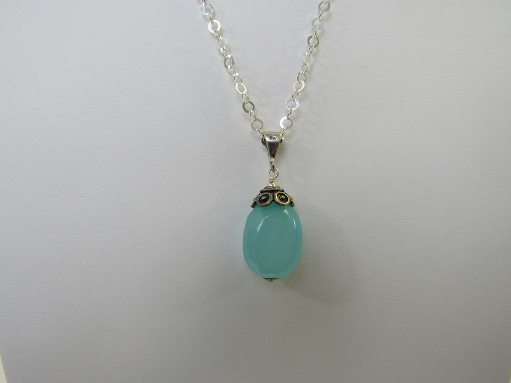 AQUA BLUE CHALCEDONY PENDANT NECKLACE, 925 Sterling Silver, 20" ALLUREGEM S1099