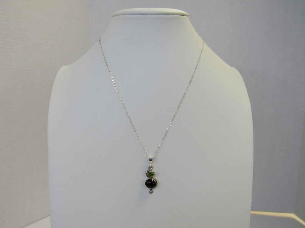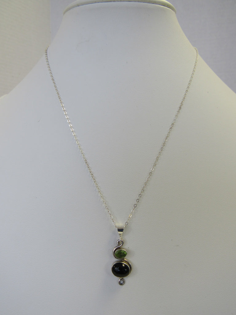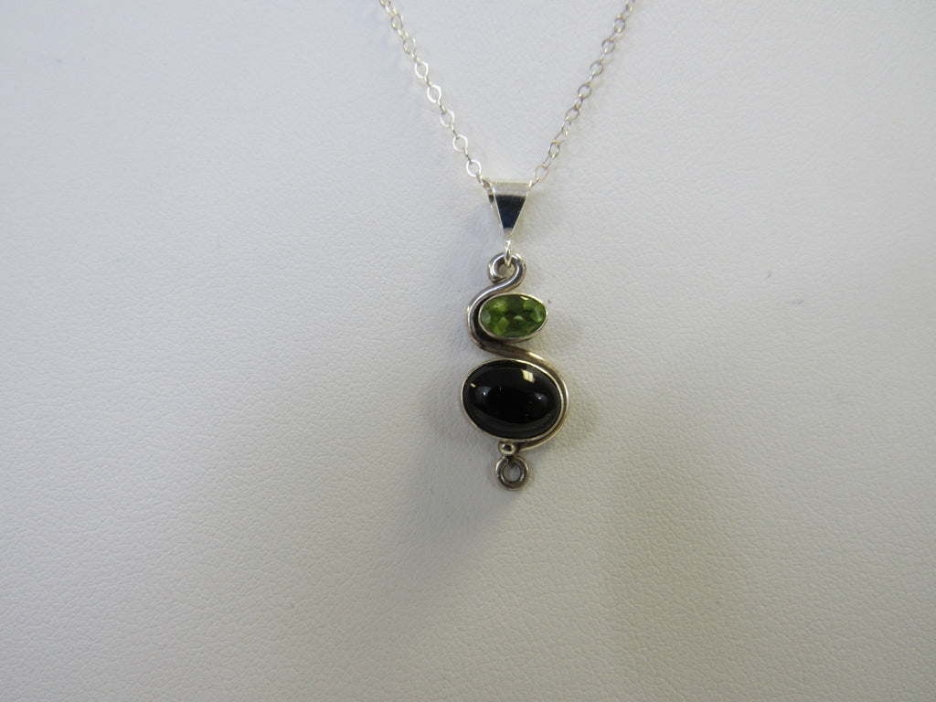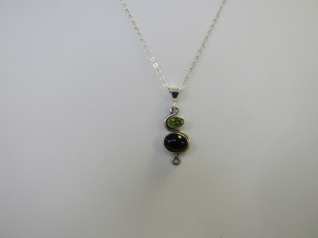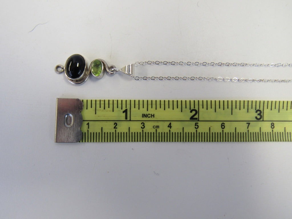 925 BLACK ONYX & PERIDOT PENDANT NECKLACE 20"