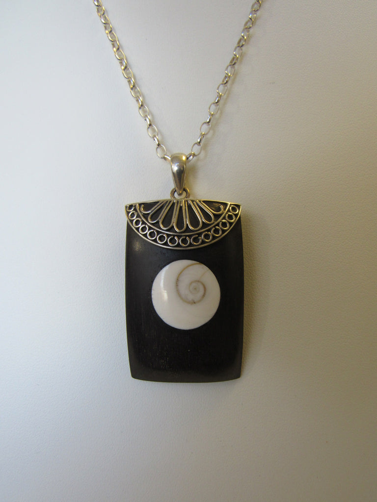 925 STERLING SILVER BLACKWOOD SHIVA'S "EYE" PENDANT NECKLACE 17 gm ALLUREGEM S1313