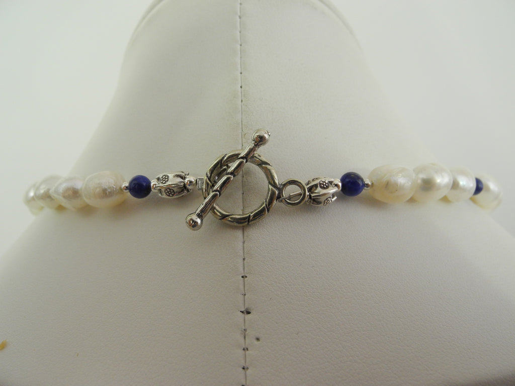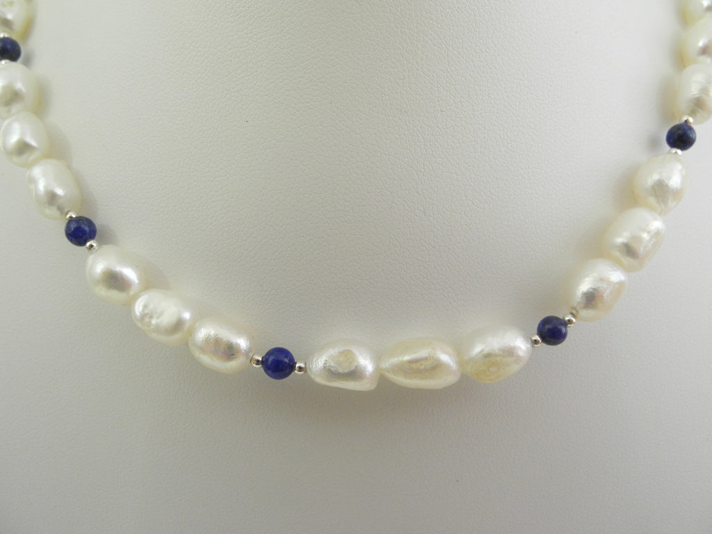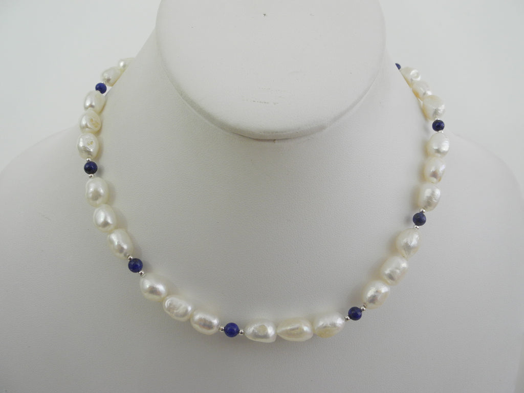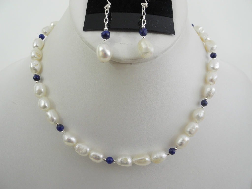 925 STERLING SILVER FRESHWATER PEARL & LAPIS NECKLACE SET 16 "