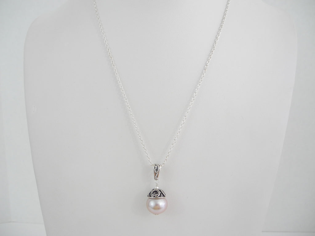 925 Sterling Silver Freshwater Pearl  Pendant Necklace 19 "