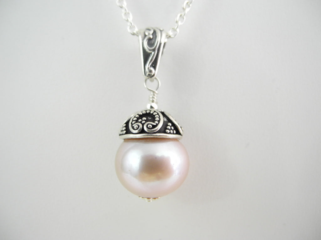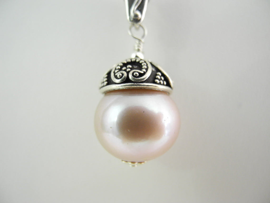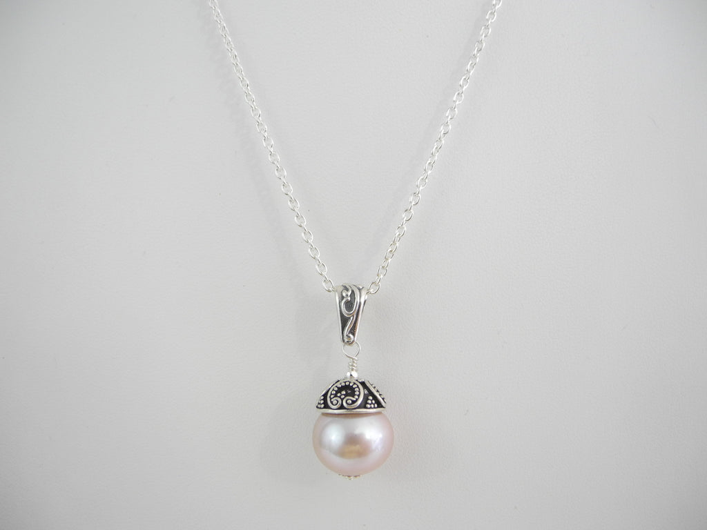 925 Sterling Silver Freshwater Pearl Pendant Necklace 10 gm 13.5 mm 19 " Alluregem S1705