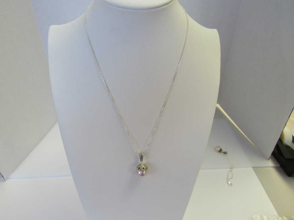 925 STERLING SILVER GENUINE FRESHWATER PEARL PENDANT NECKLACE 9.3 gm 20 " ALLUREGEM S1329
