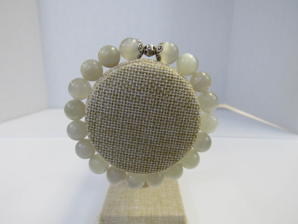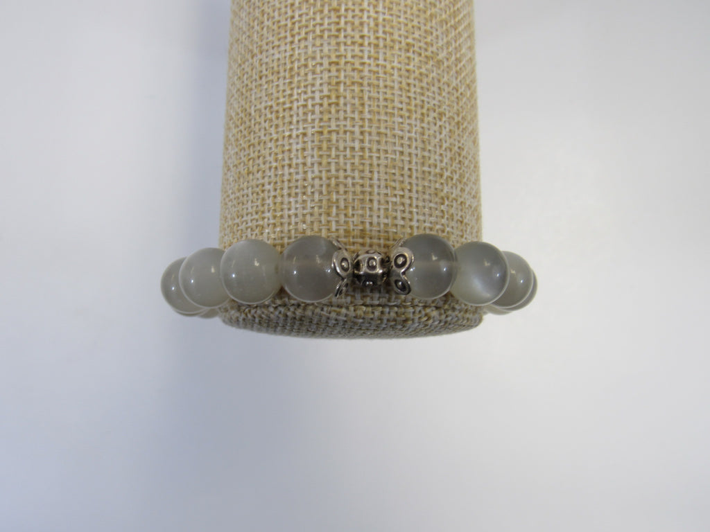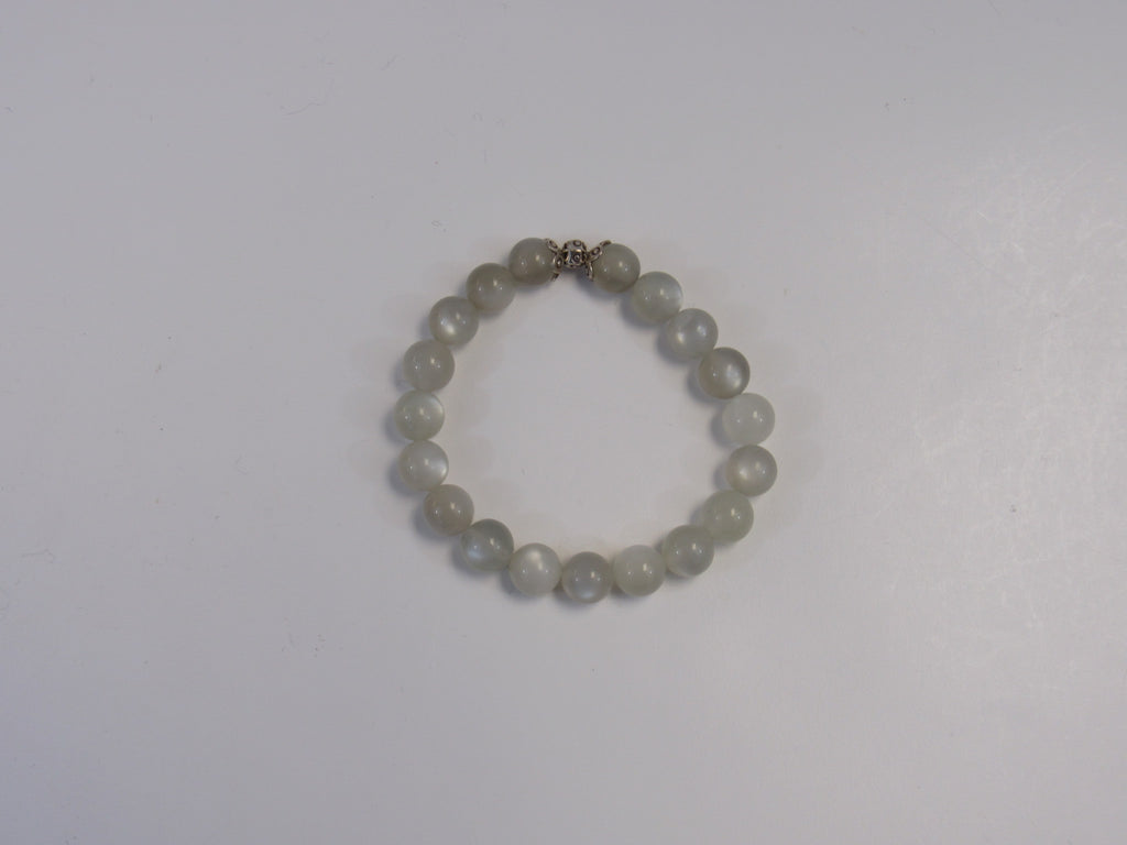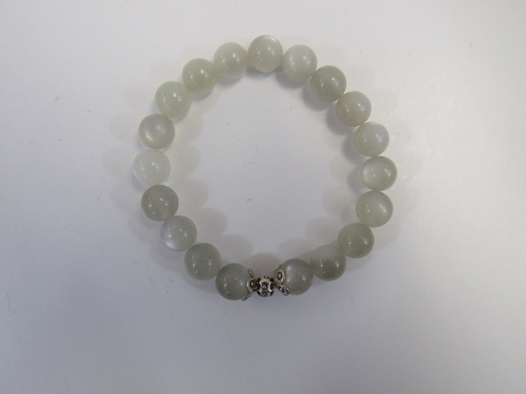 NATURAL GREY MOONSTONE  STRETCH  BRACELET  7 "