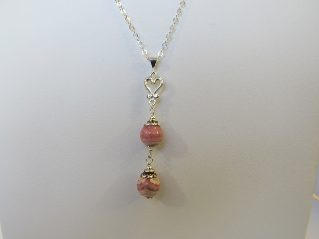 925 STERLING SILVER NATURAL PINK RHODOCHROSITE PENDANT NECKLACE 20 " S1158
