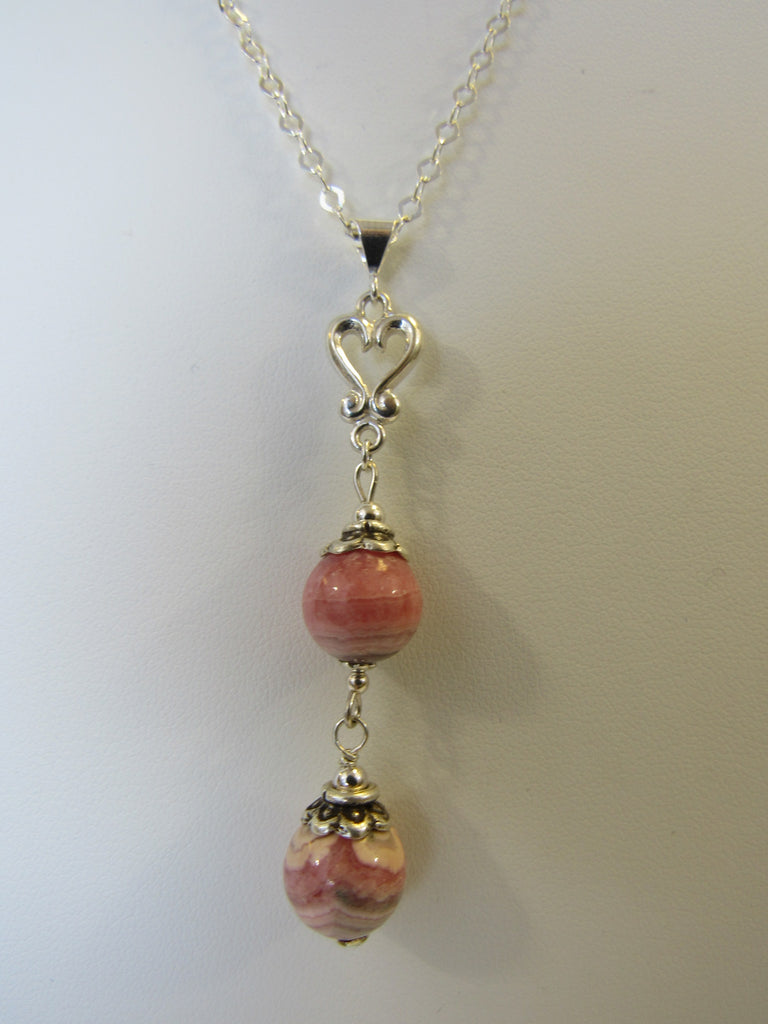 925 STERLING SILVER PINK RHODOCHROSITE PENDANT NECKLACE
