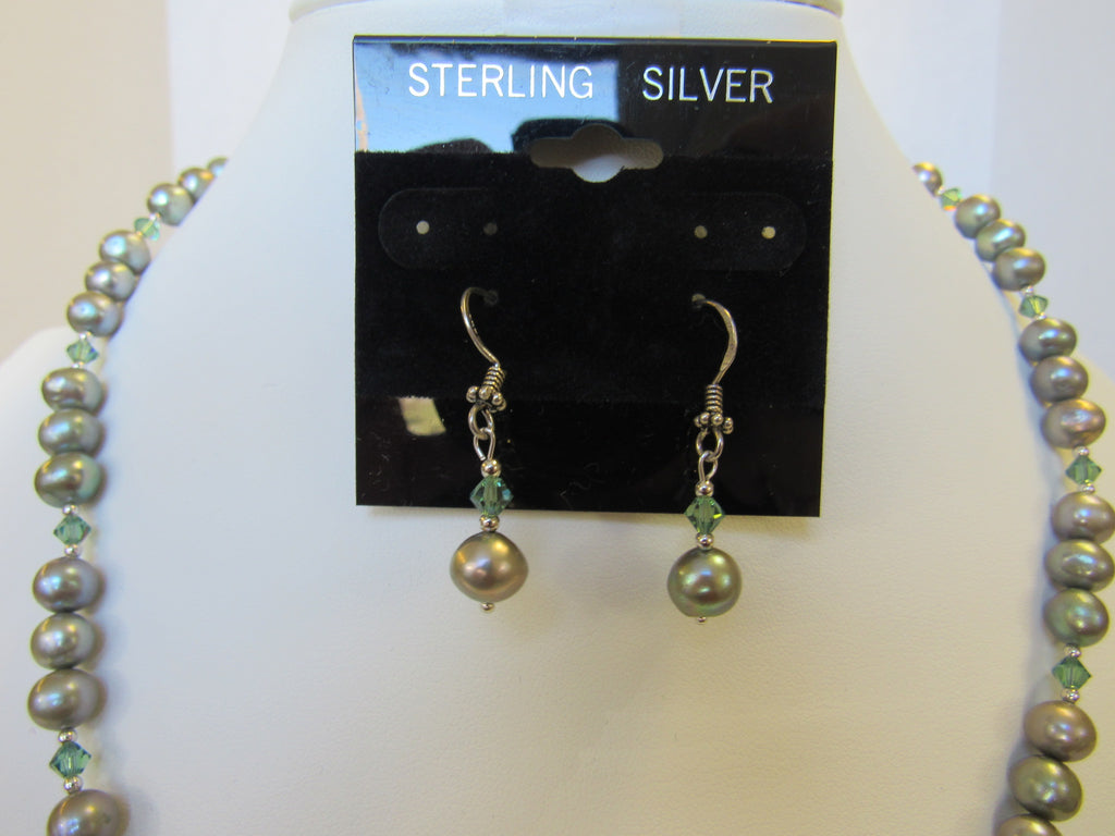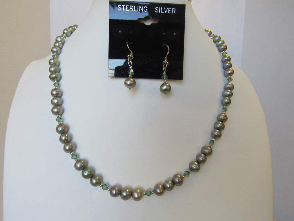 925 STERLING SILVER FRESHWATER PEARL & CRYSTAL NECKLACE SET