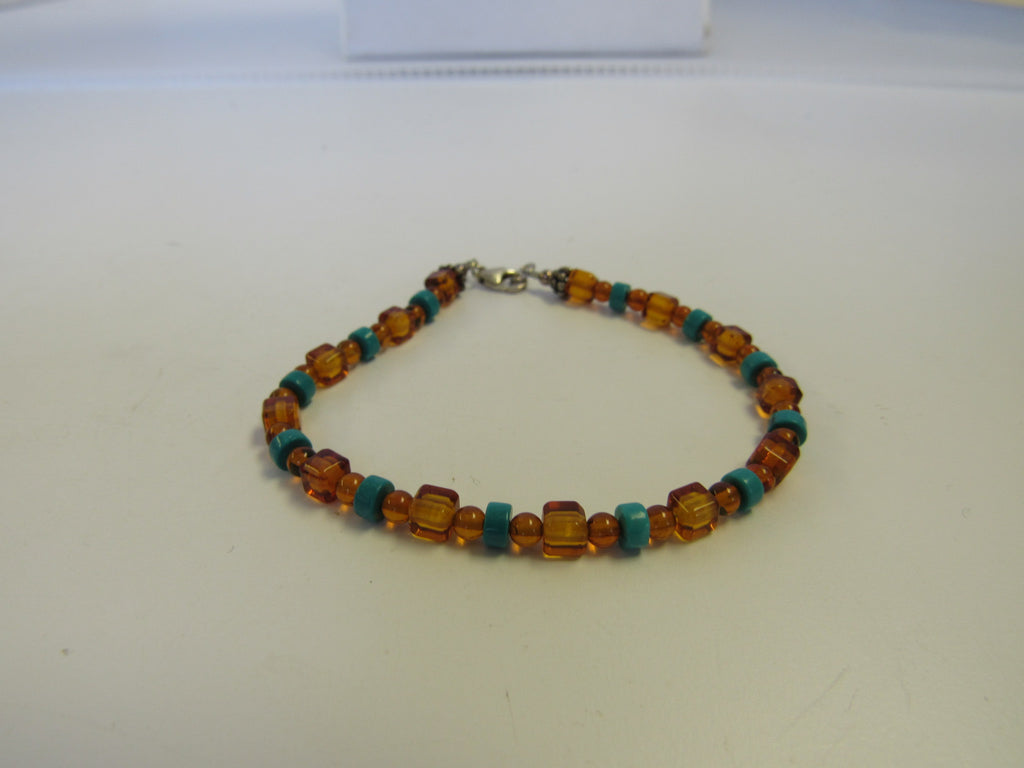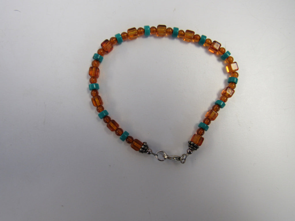 925 NATURAL TURQUOISE AND BALTIC AMBER BEAD BRACELET 7.25 "