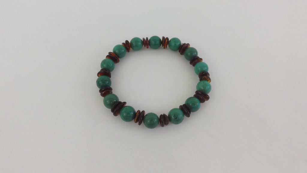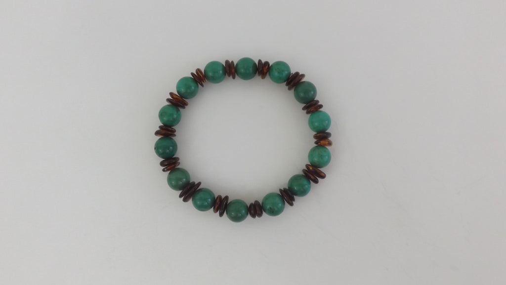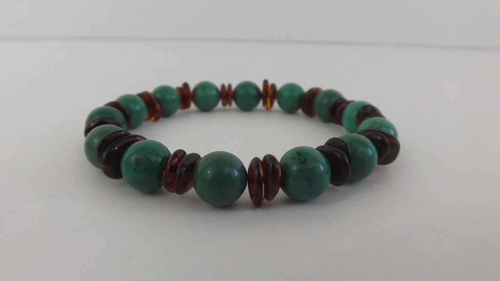 NATURAL TURQUOISE AND BALTIC AMBER BEAD BRACELET 8 "