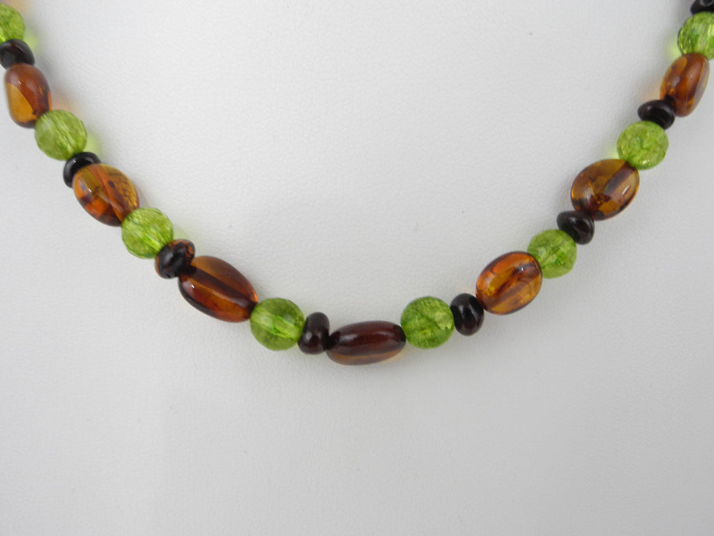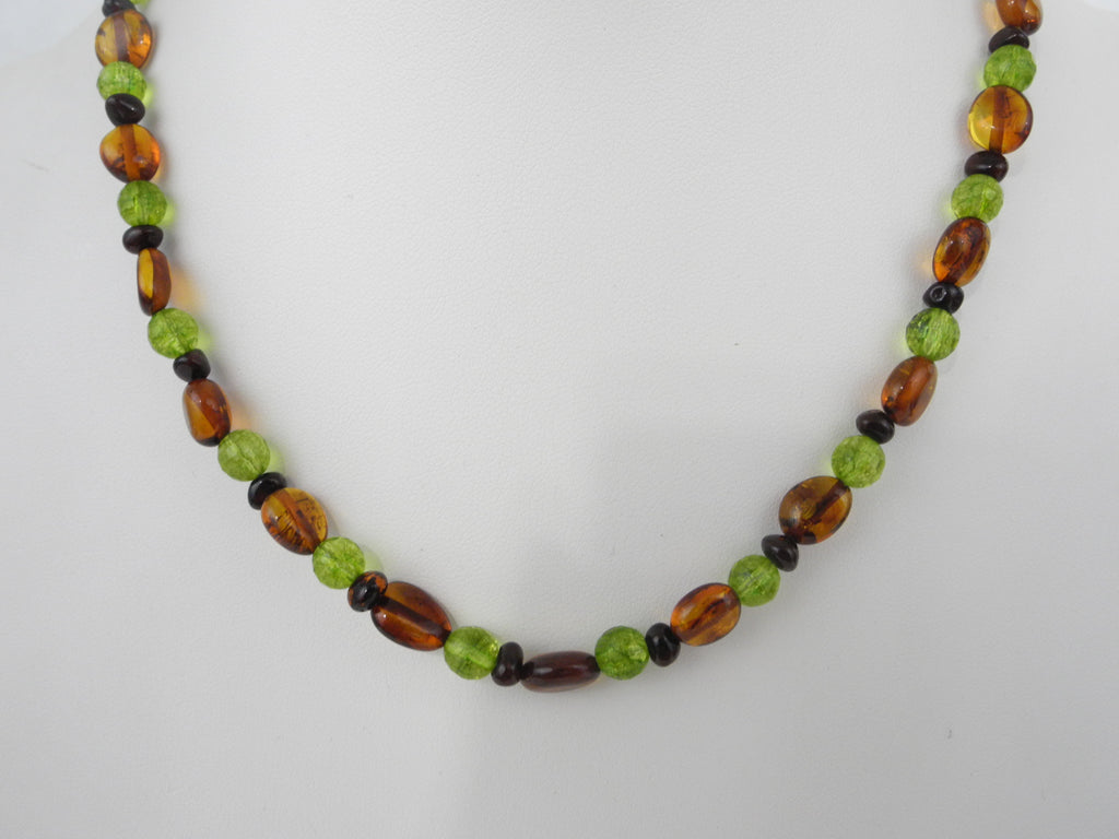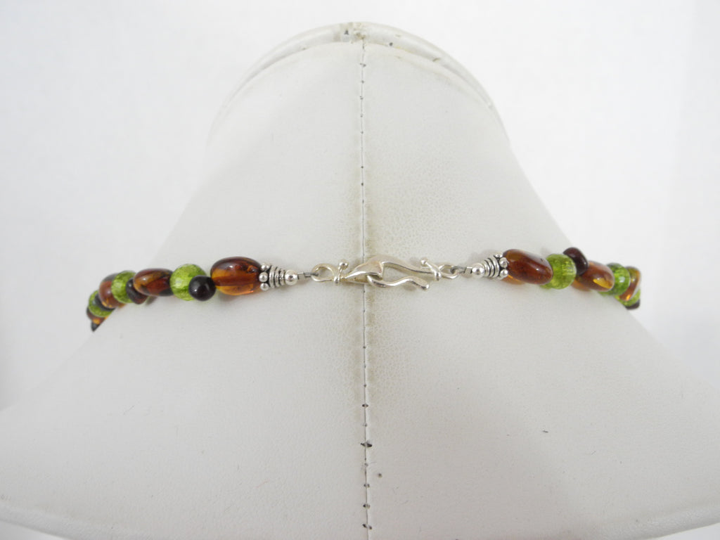 Baltic Amber & Gemstone Necklace, 925 Sterling Silver, 18" ALLUREGEN S1414