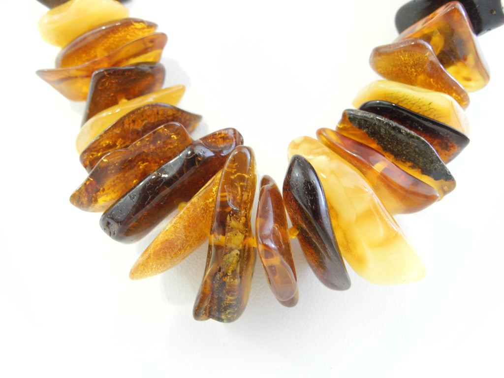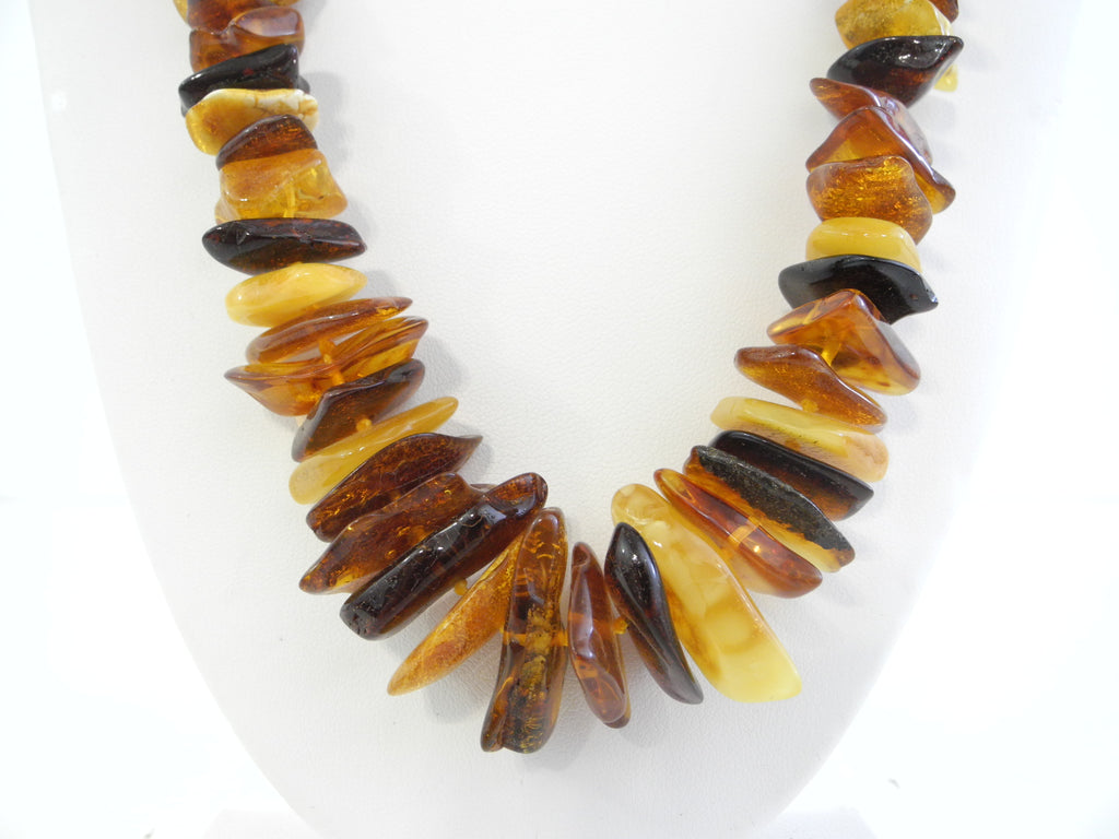 BALTIC AMBER NECKLACE CHIPS GRADUATED, HONEY 71 gm 29 " ALLUREGEM S1253