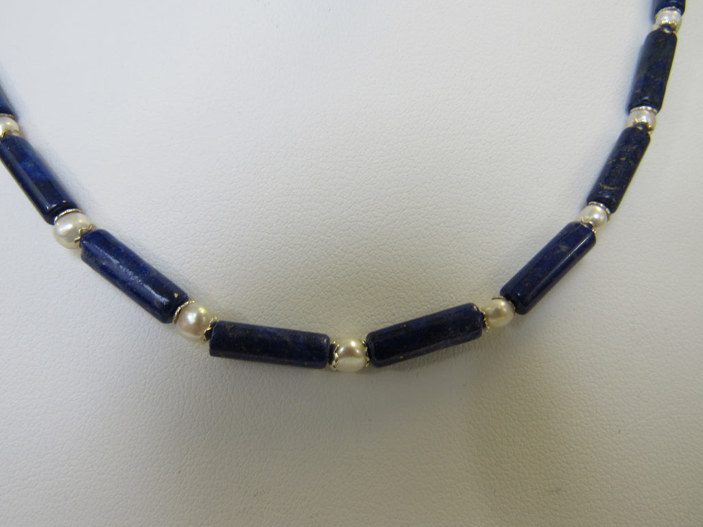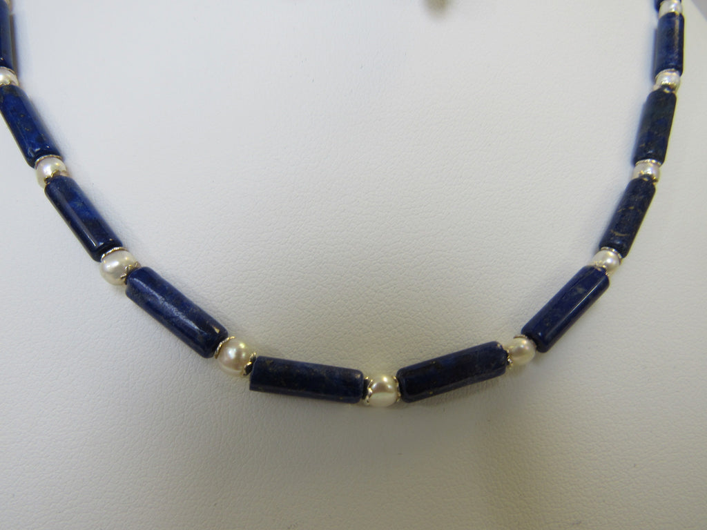 925 STERLING SILVER NATURAL LAPIS LAZULU & FRESHWATER PEARL NECKLACE SET 17 gm 18" ALLUREGEM S1231