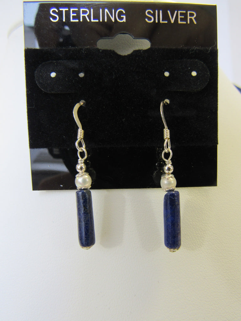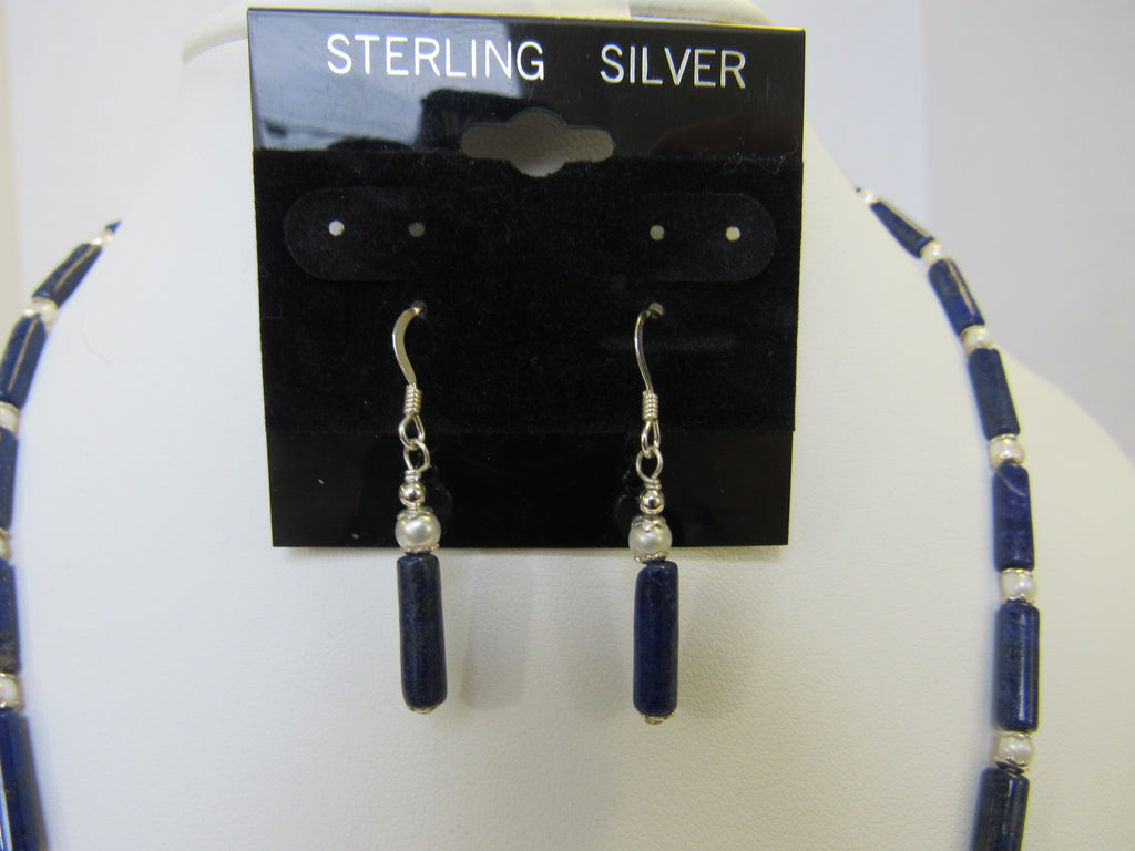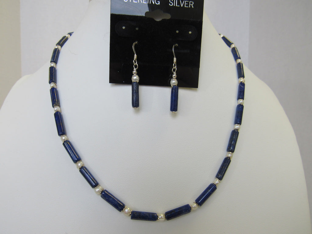 925 NATURAL LAPIS LAZULI & PEARL NECKLACE SET 18"