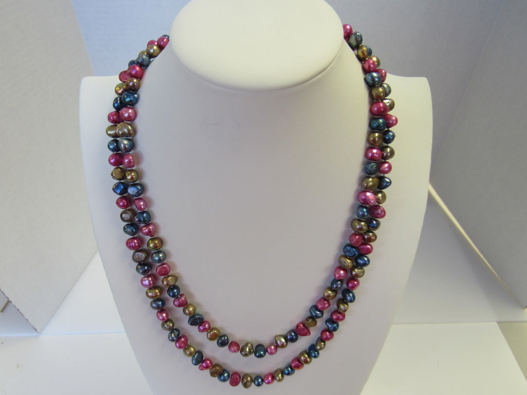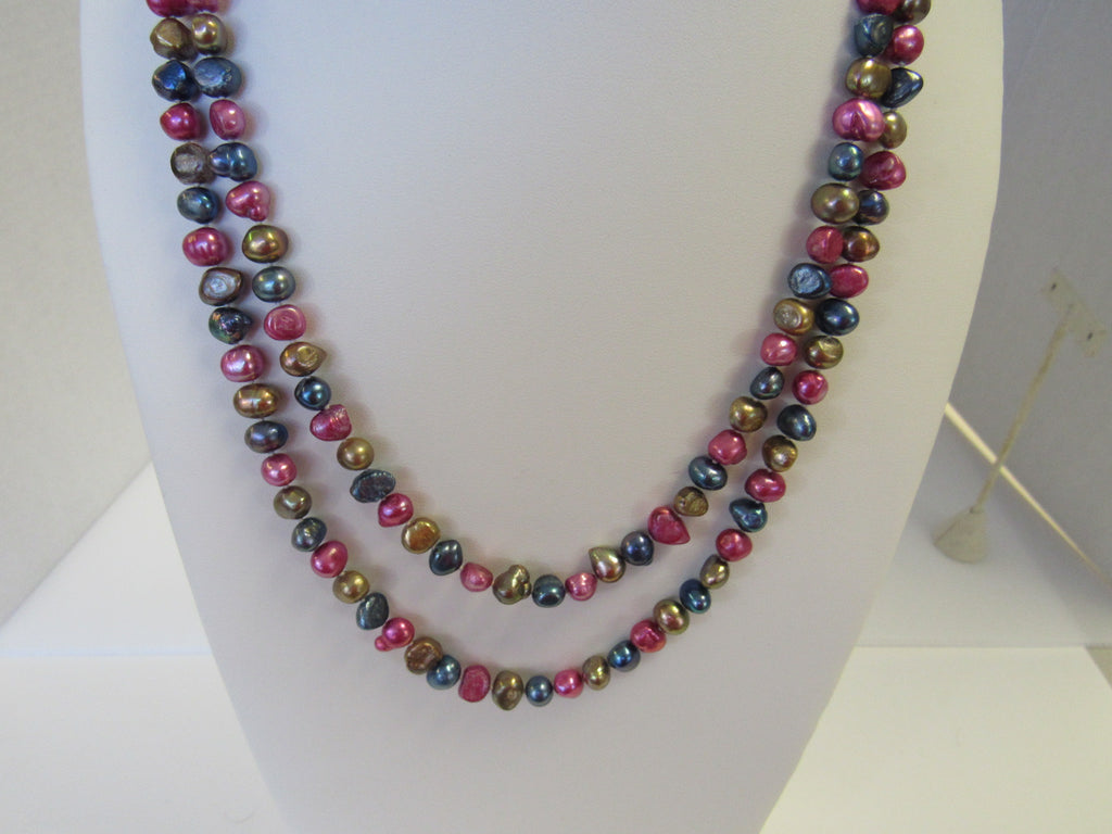 GENUINE FRESHWATER PEARL NECKLACE, MULTI-COLOR 9-11 mm 99 gm, 46" ALLUREGEM S1304