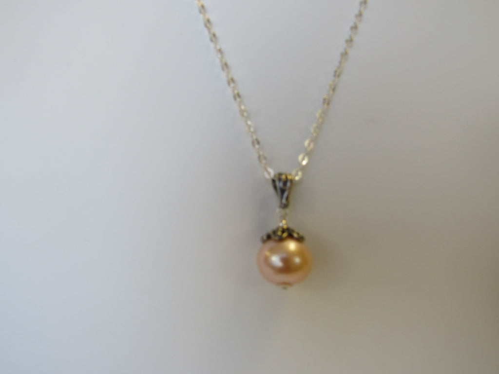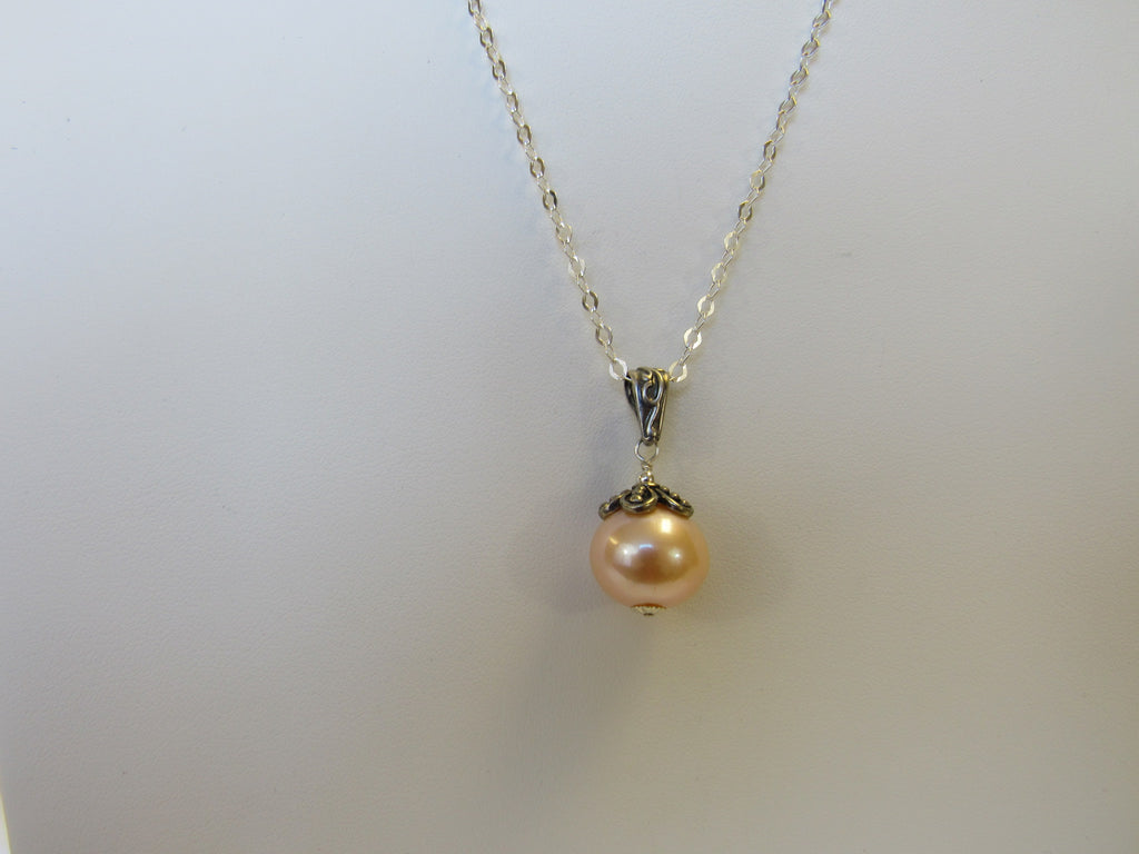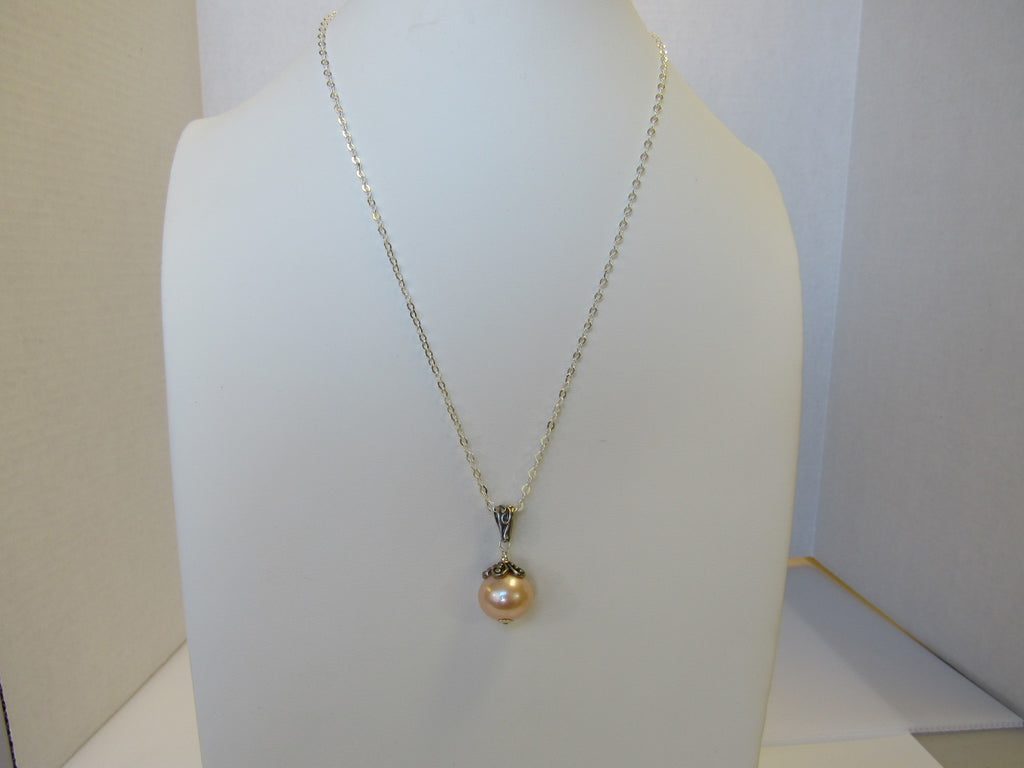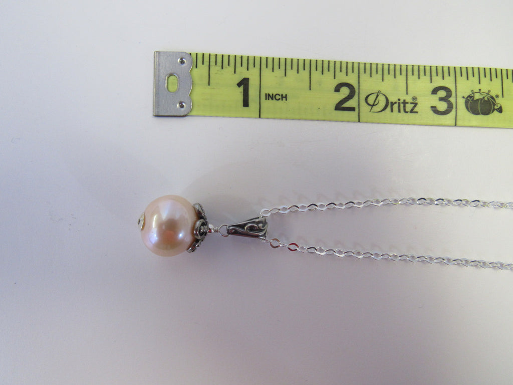 925 STERLING SILVER GENUINE FRESHWATER PEARL PENDANT NECKLACE PINK 7.5 gm 20 " ALLUREGEM S1339