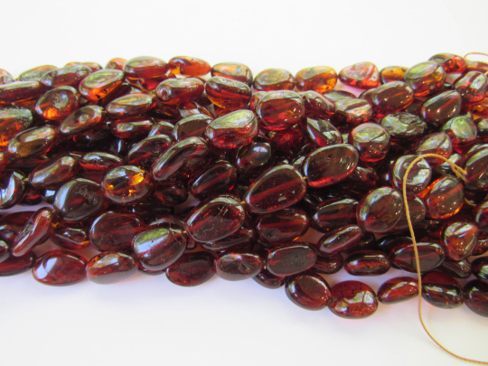 Large Natural Baltic Amber Bead Strands, Cognac, Large Flat Oval 5 - 7 gms per strand, 11 - 16 mm beads 8" Alluregem E2201