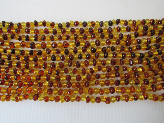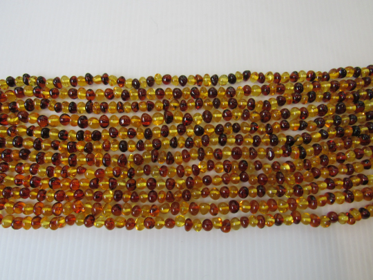 Natural Baltic Amber Bead Strands, Lemon and Cognac, Rounded Baroque 12 - 14 gms per strand, 7 - 8 mm beads 16" Alluregem E2155