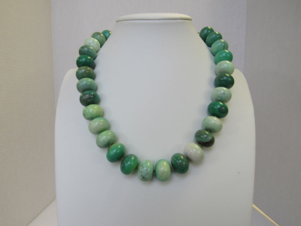 925 STERLING SILVER GRASS TURQUOISE NECKLACE 18-20 " ALLUREGEM S1189