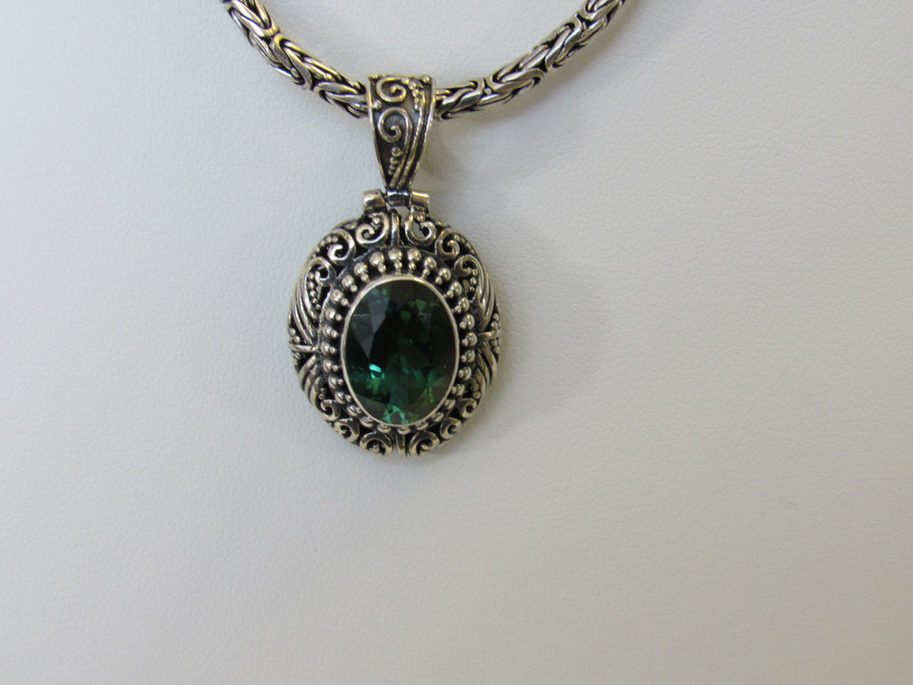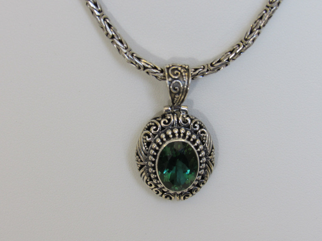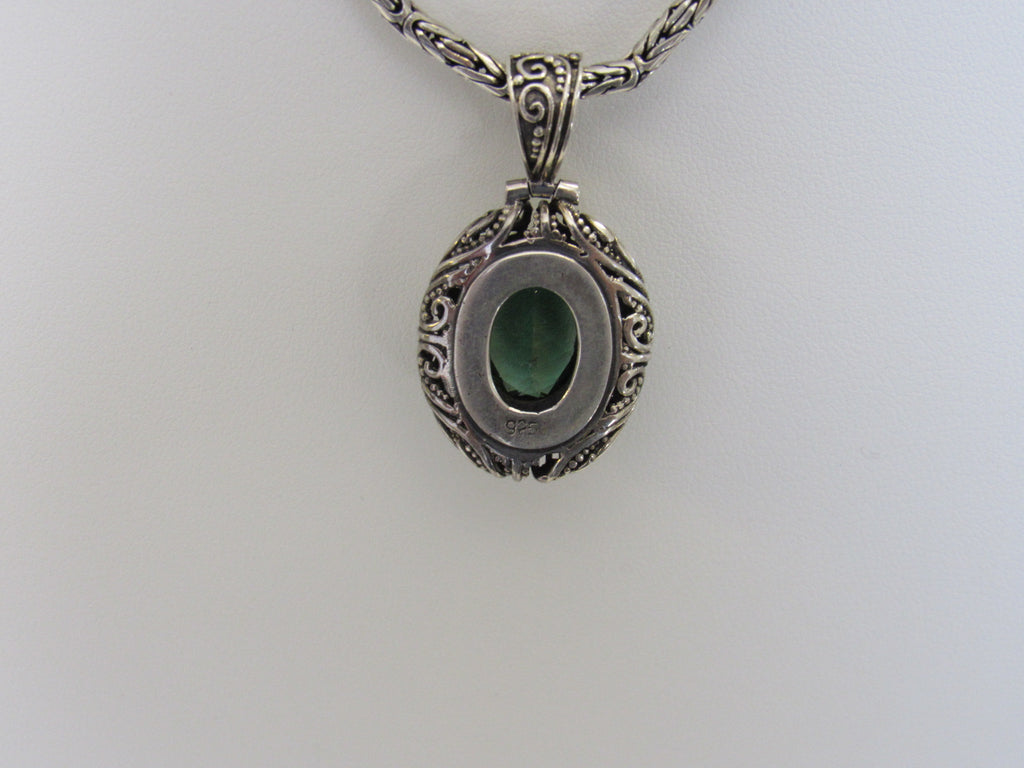 925 STERLING SILVER GREEN GARNET PENDANT NECKLACE & BRACELET SET 17"