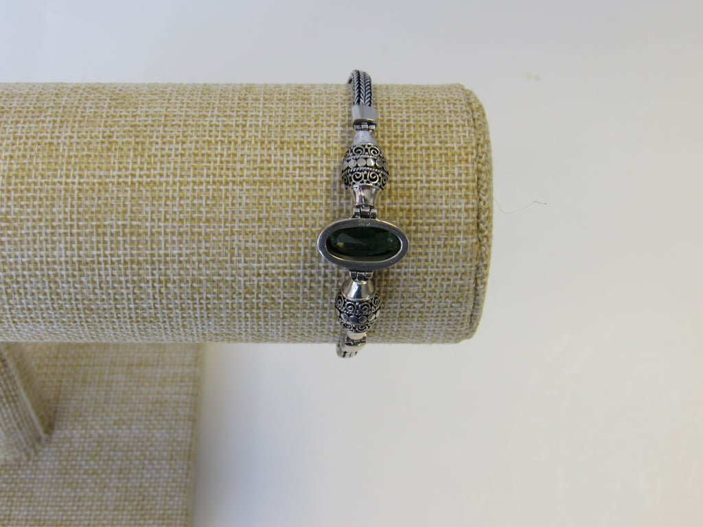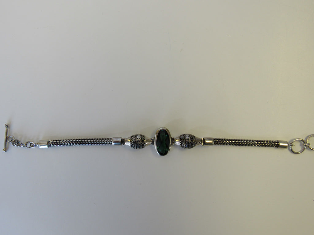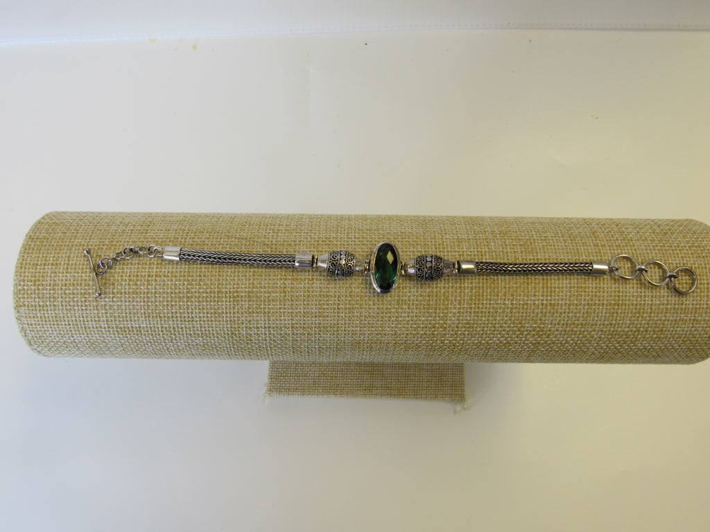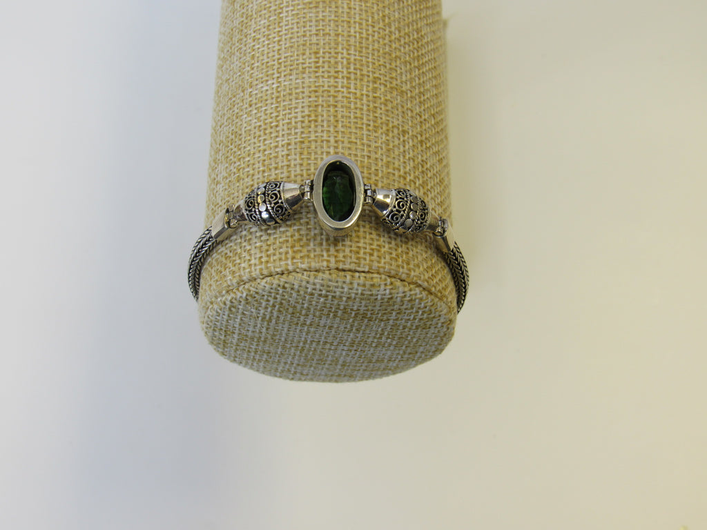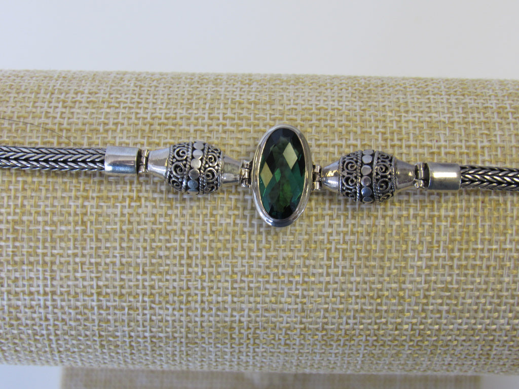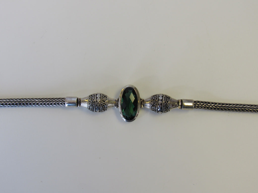 925 STERLING SILVER GREEN GARNET NECKLACE & BRACELET SET, 42 gm ALLUREGEM S1091